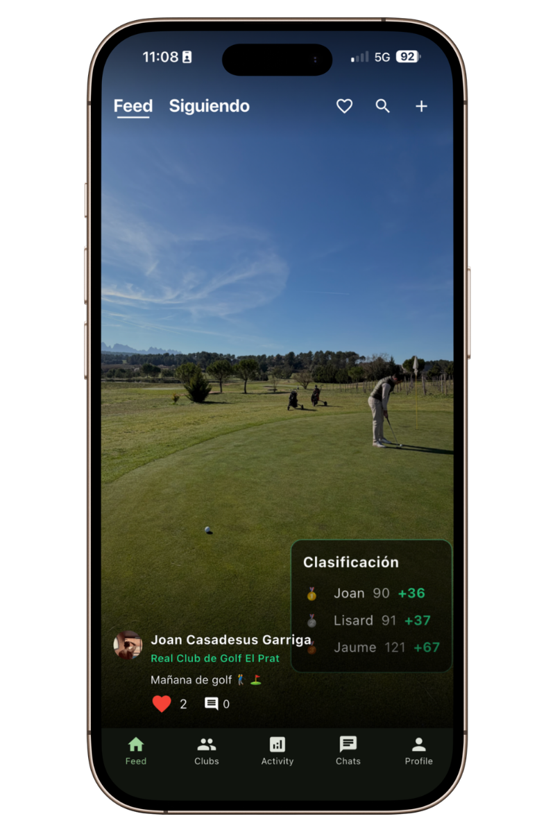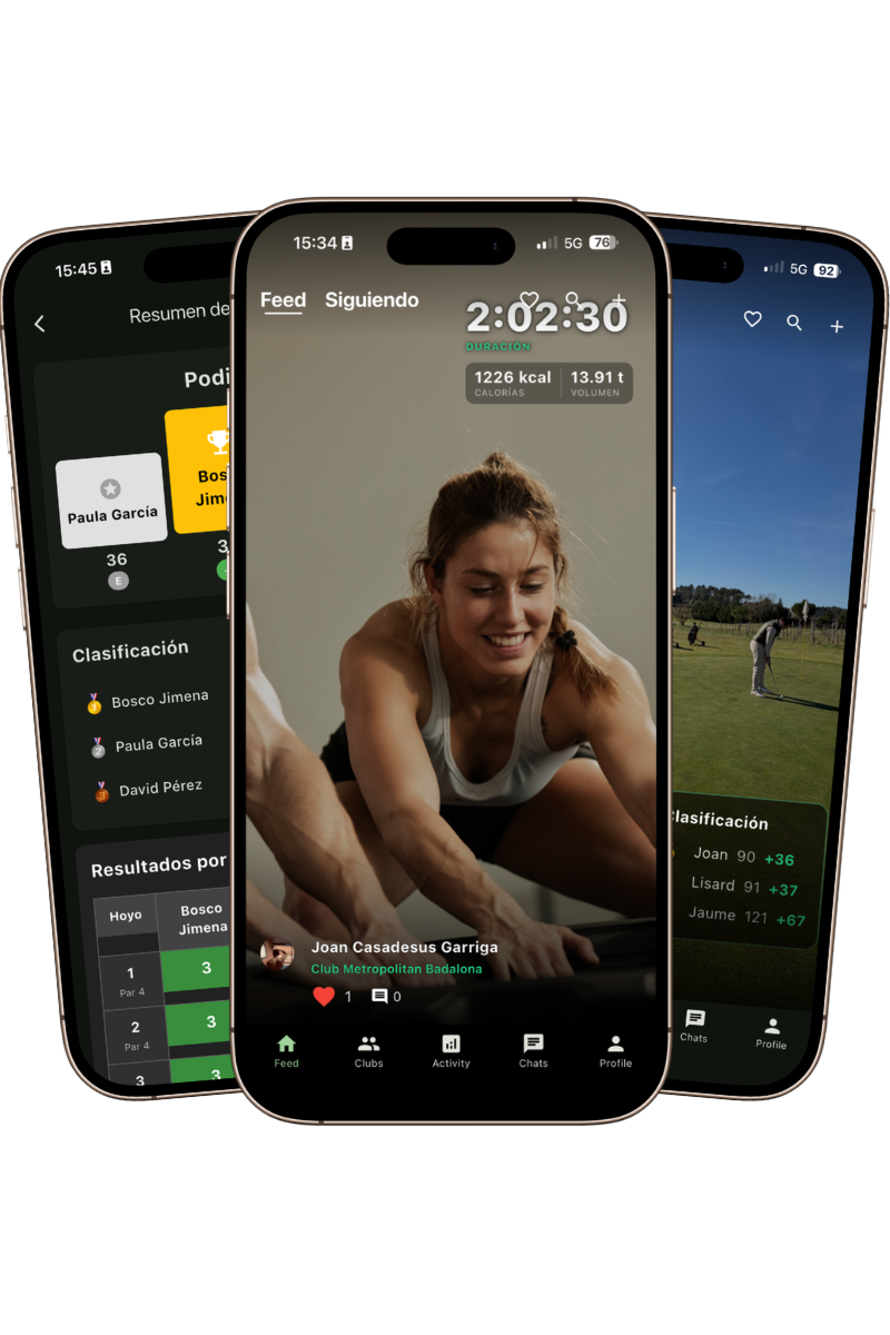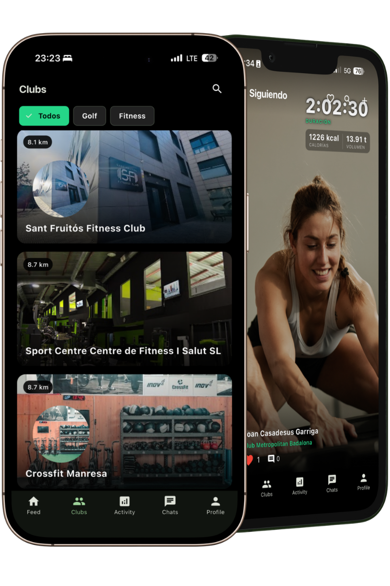 Cada publicación puede mostrar el workout realizado y el lugar donde ocurrió, convirtiendo el feed en una comunidad real de atletas, clubes y progreso compartido.
