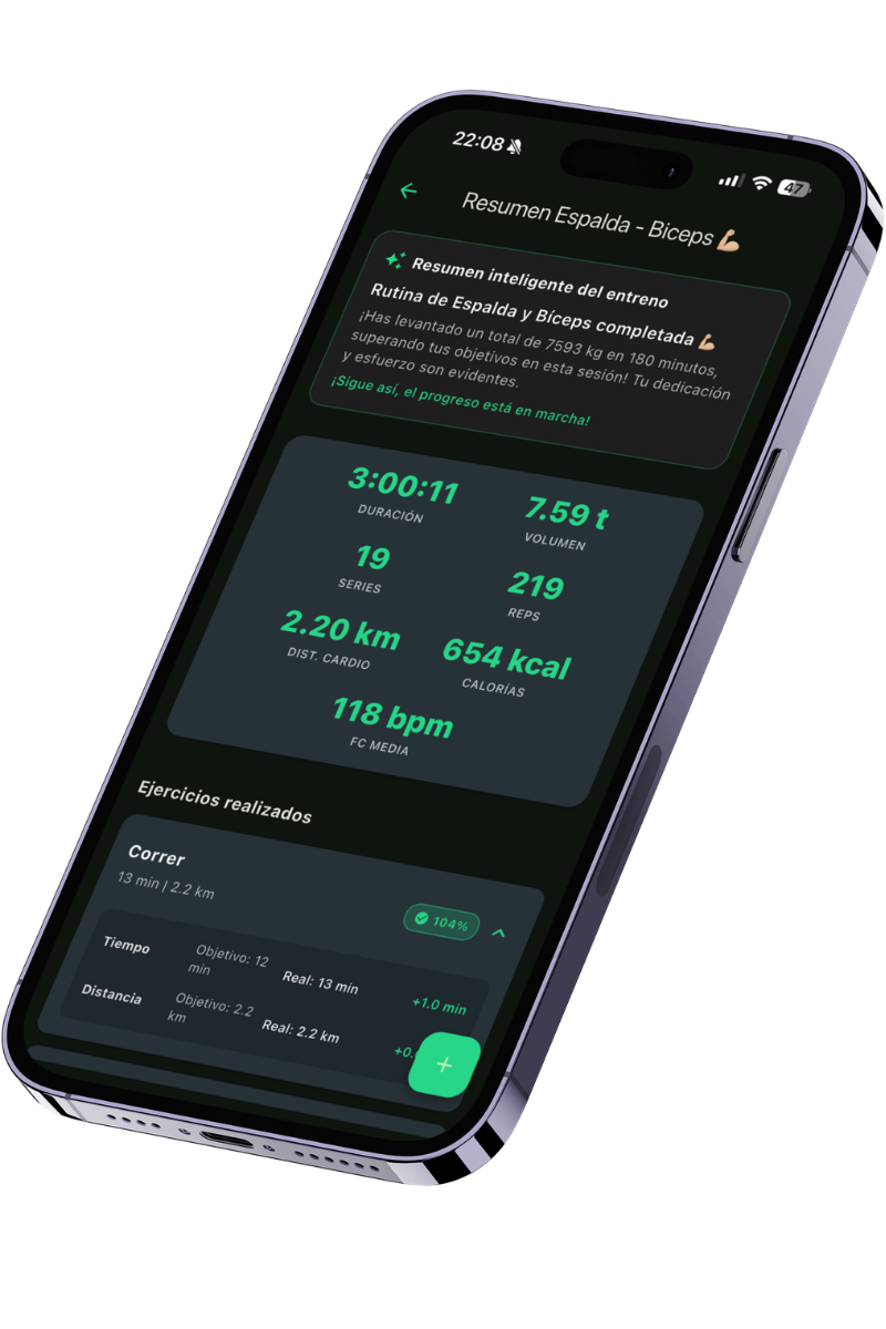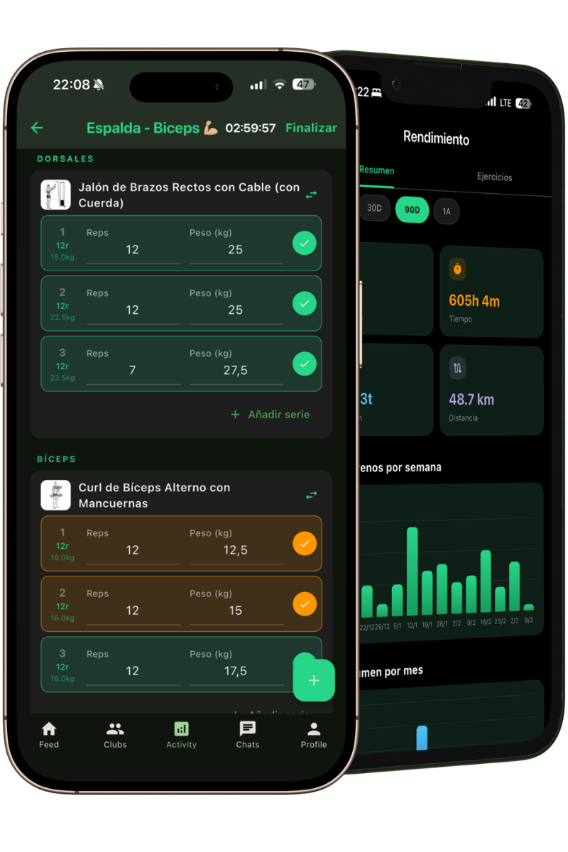 Guarda tus sesiones, ejercicios y progreso para que todo lo que haces tenga sentido. No se trata solo de entrenar, sino de ver cómo avanzas.